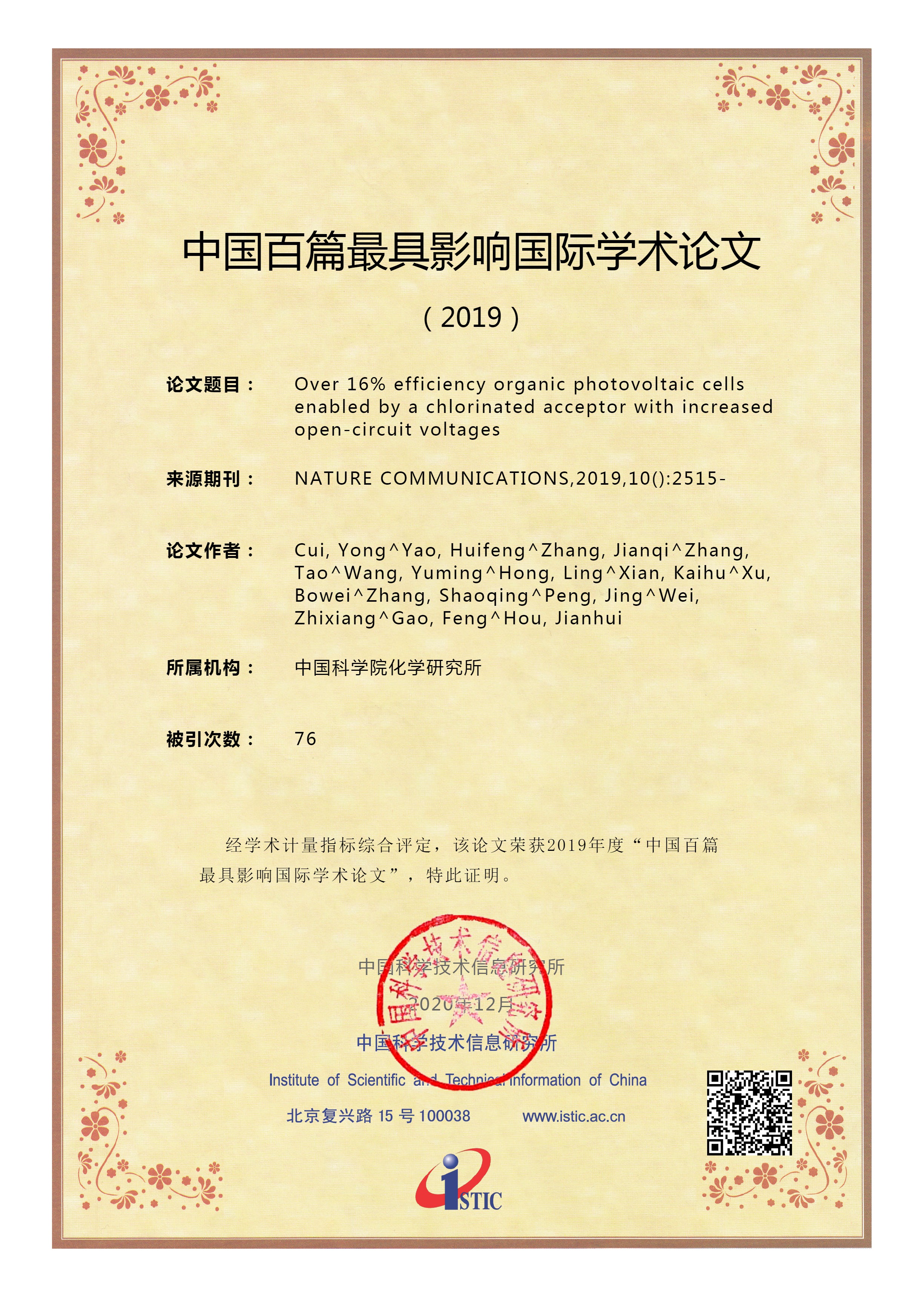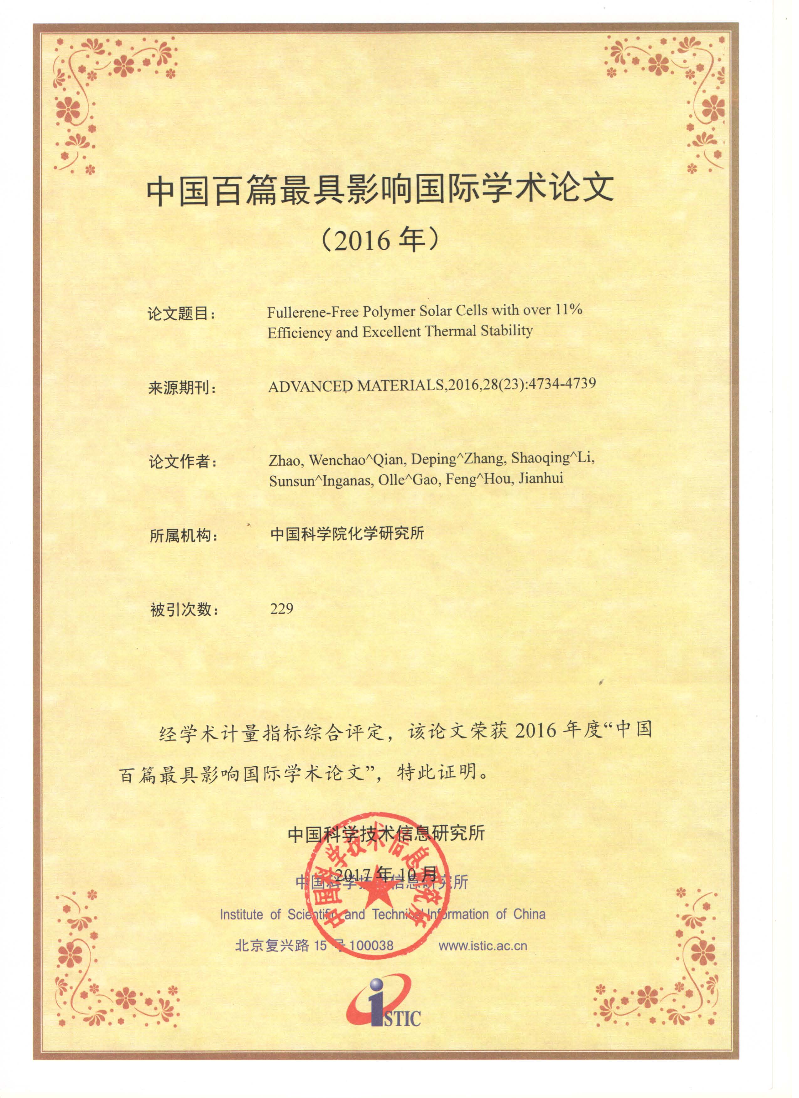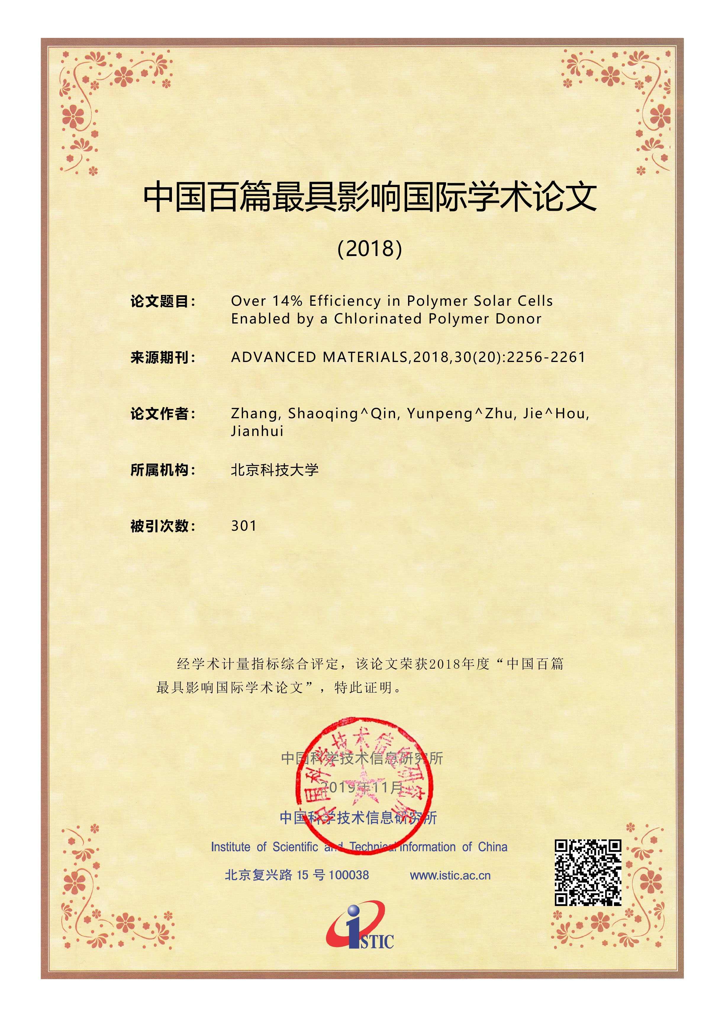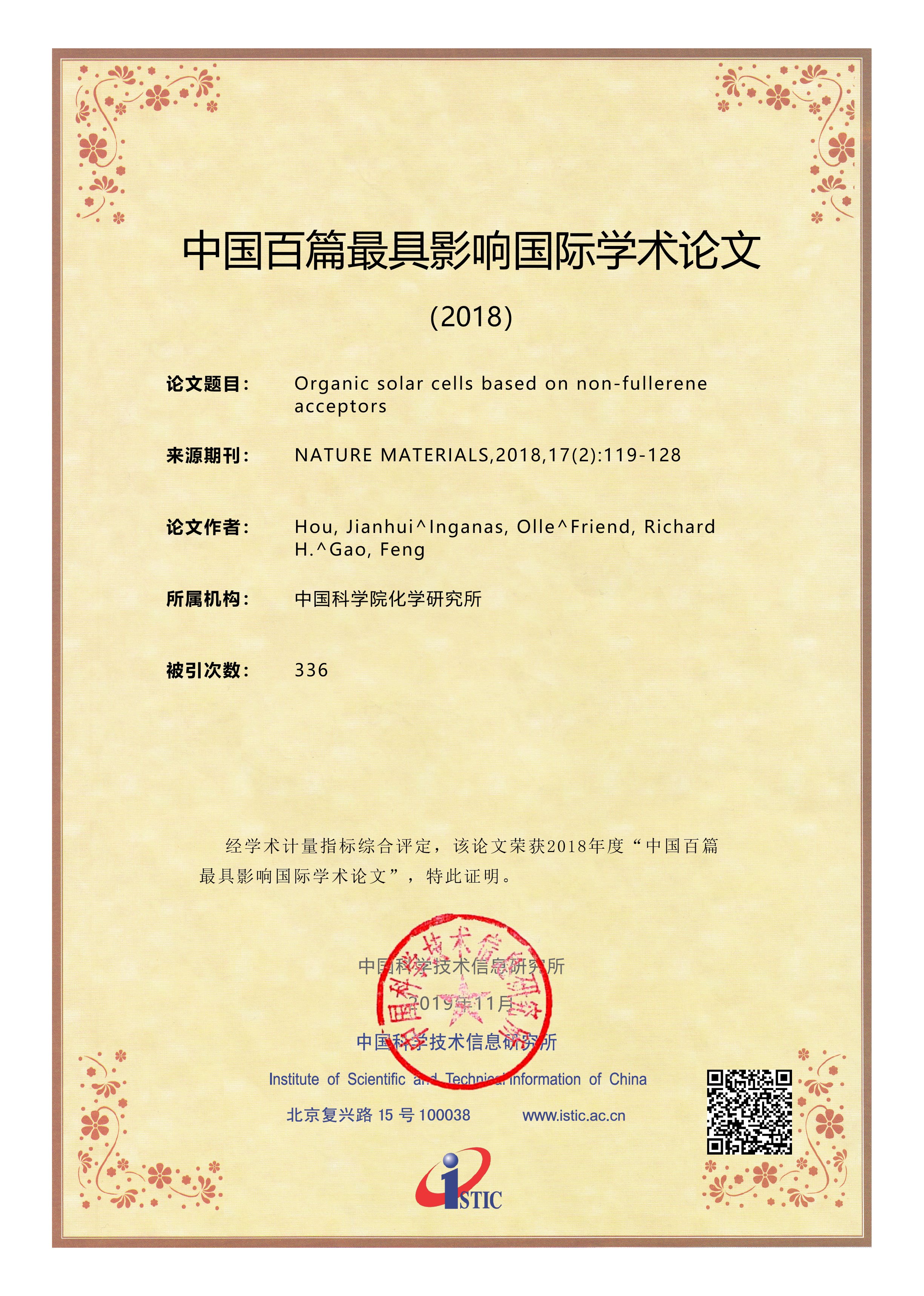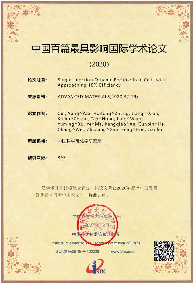 1. 中国百篇最具影响优秀国际学术论文